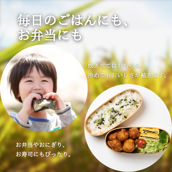 炊き上がりの白さとツヤが美しく、どんなおかずにも合う上品な味わいです。